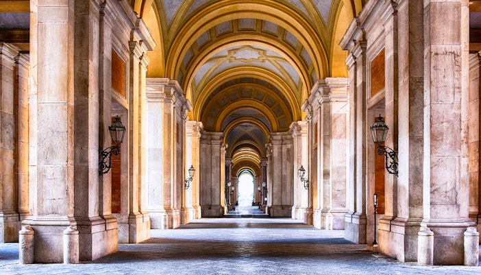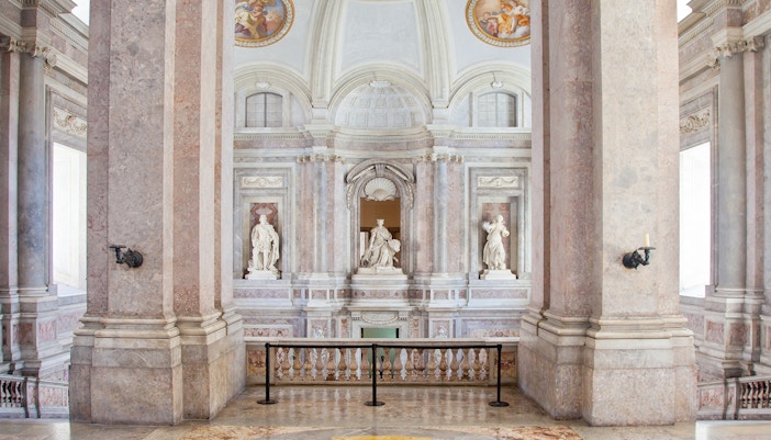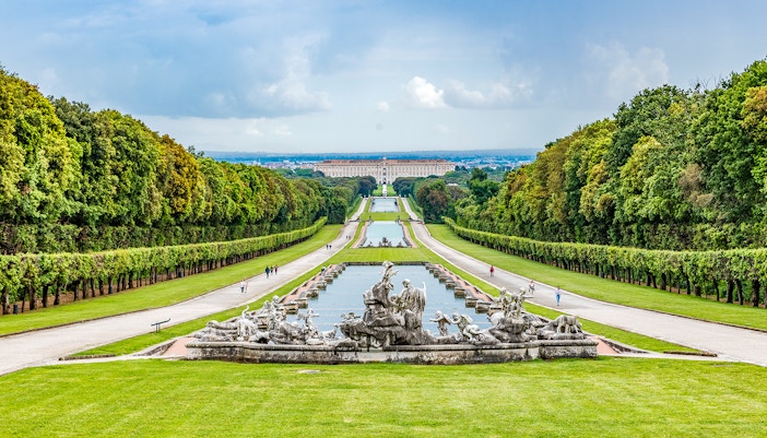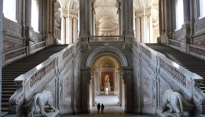 Le Palais royal de Caserte est le plus grand palais du monde en termes de volume. Il a été conçu par l'architecte le plus célèbre de Naples à l'époque, Luigi Vanvitelli. L'illusion spatiale multidirectionnelle est visible à l'intérieur du palais et les vastes jardins et fontaines ont été alignés de manière télescopique.