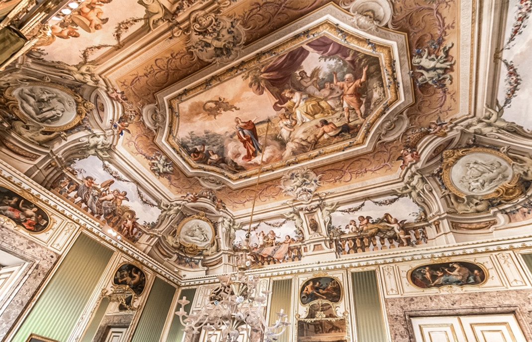 - Cômodos e janelas: O palácio possui 1.200 cômodos, incluindo duas dúzias de aposentos reais, 1.742 janelas, 34 escadas e 1.026 lareiras. O palácio tem mais de 40 salas monumentais completamente decoradas com afrescos, superando o Palácio de Versalhes, que tem apenas 22.